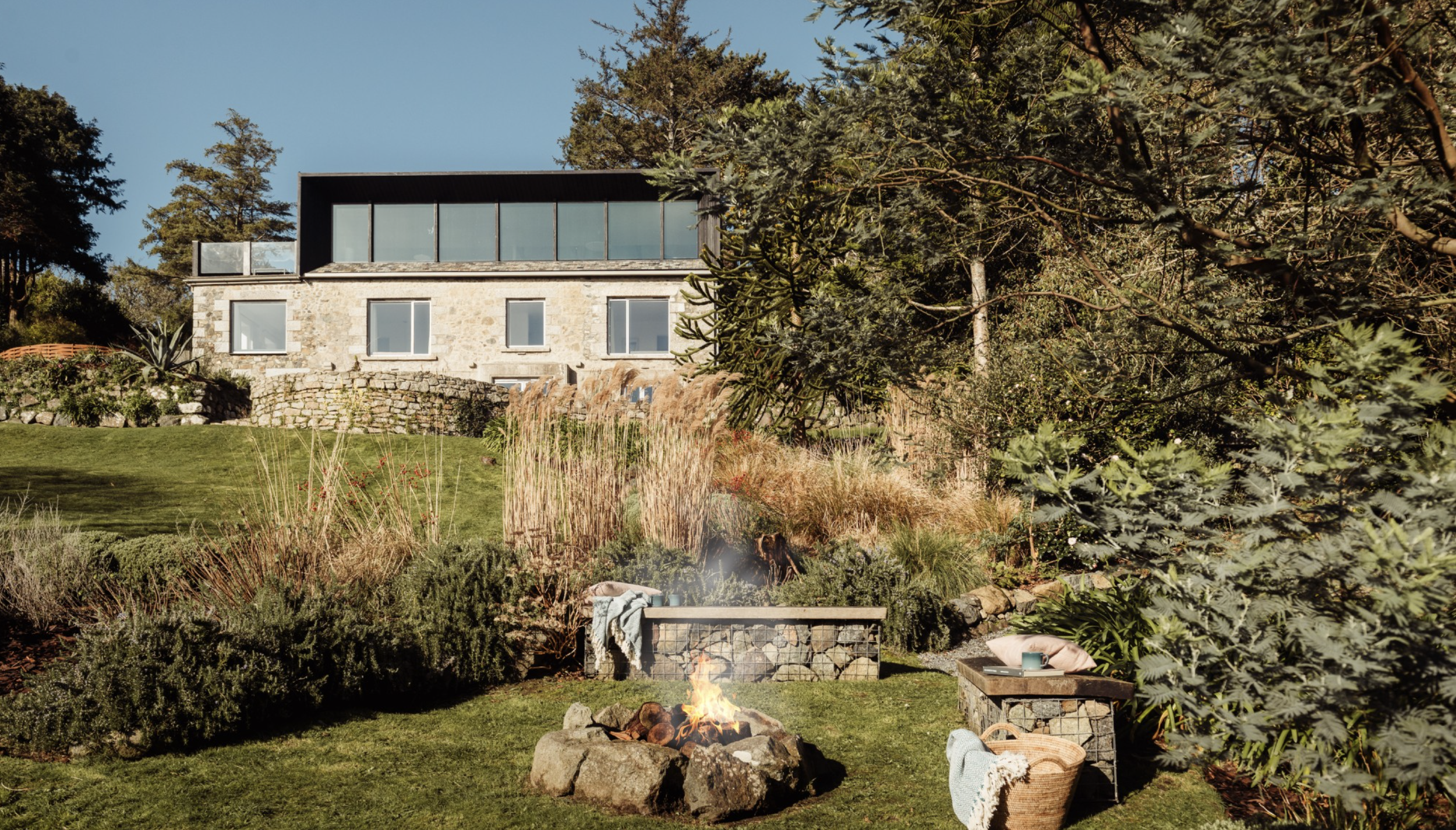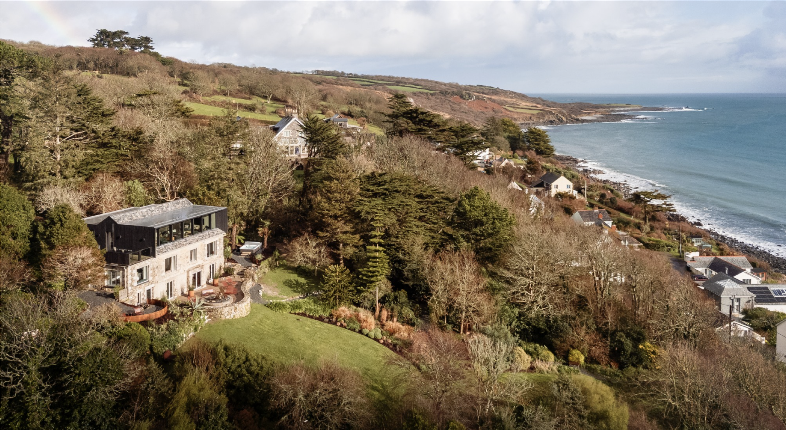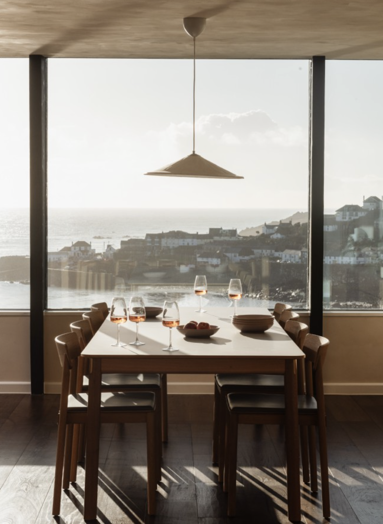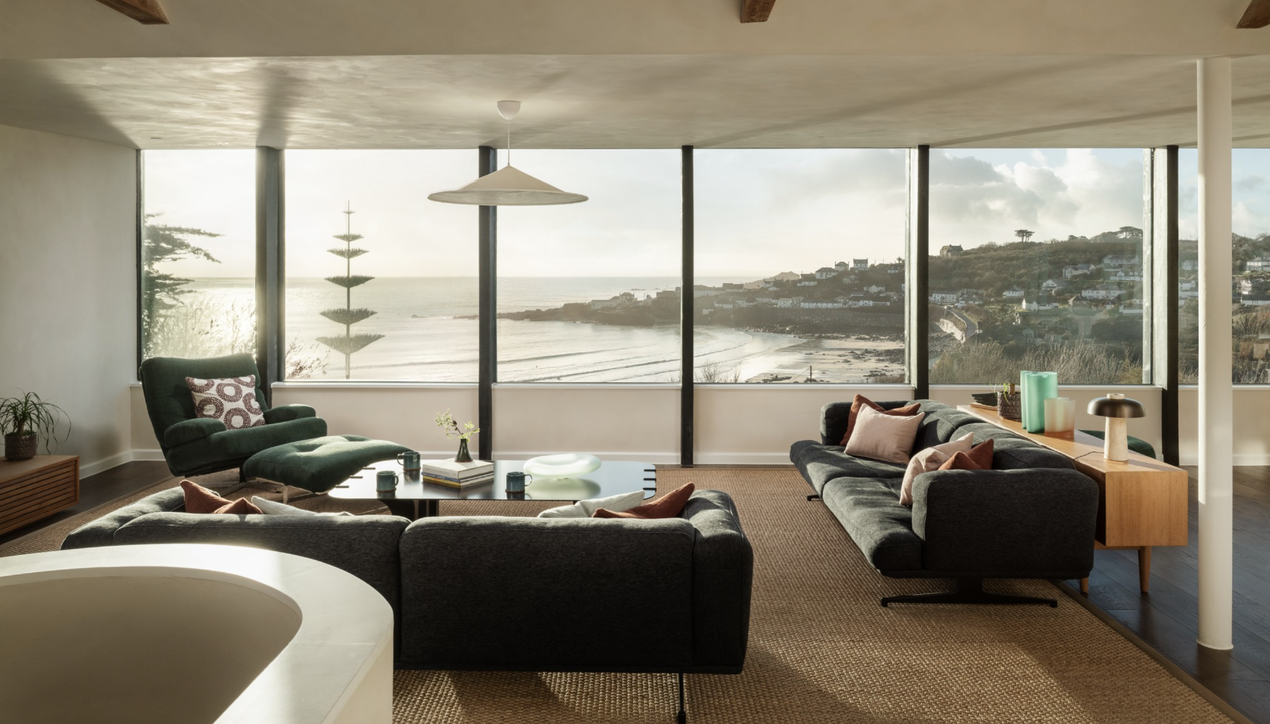 Framed in striking black cladding, the contemporary chamfered profile not only defines the architecture but also provides shelter from glare, keeping the focus on those spectacular coastal views .