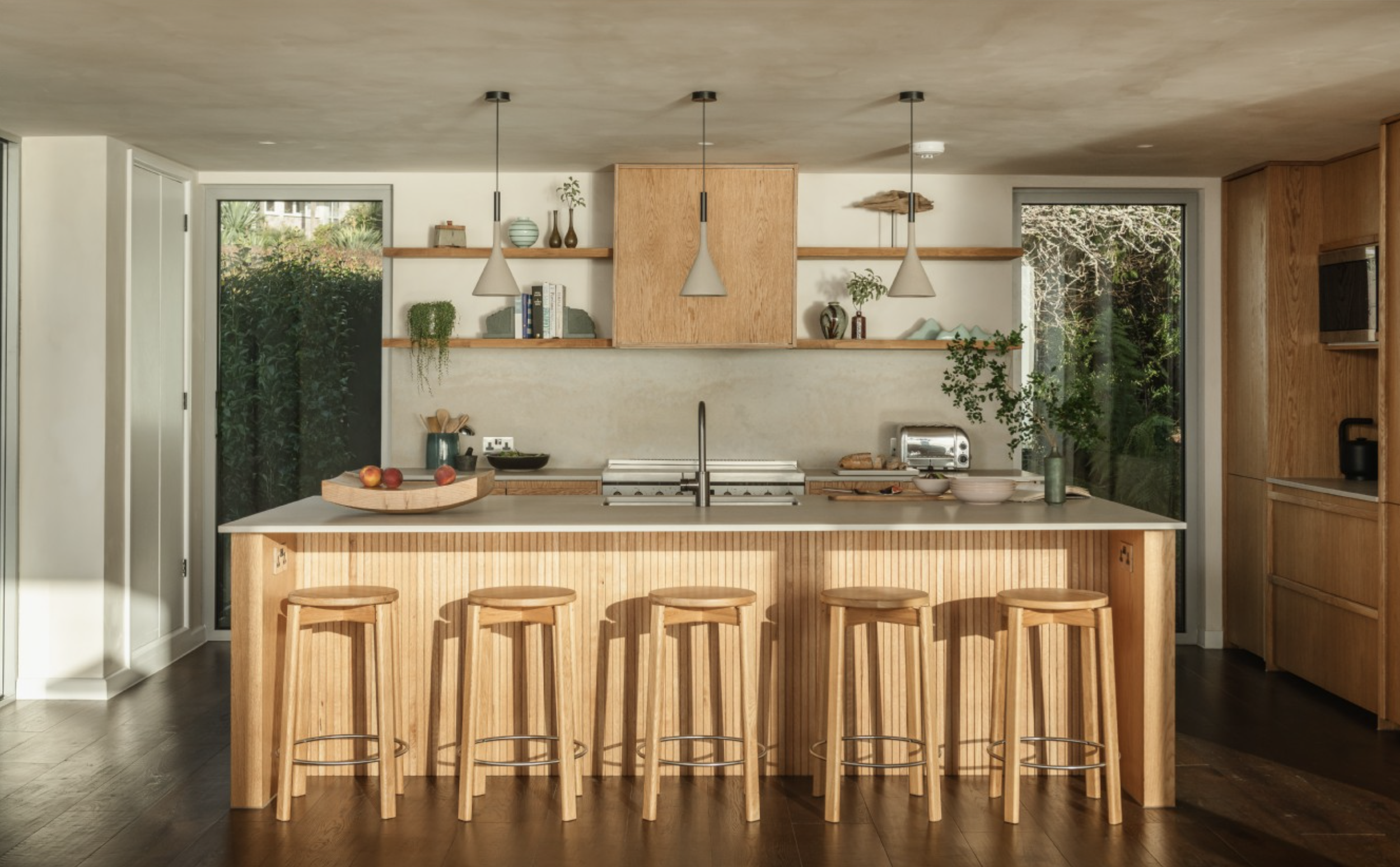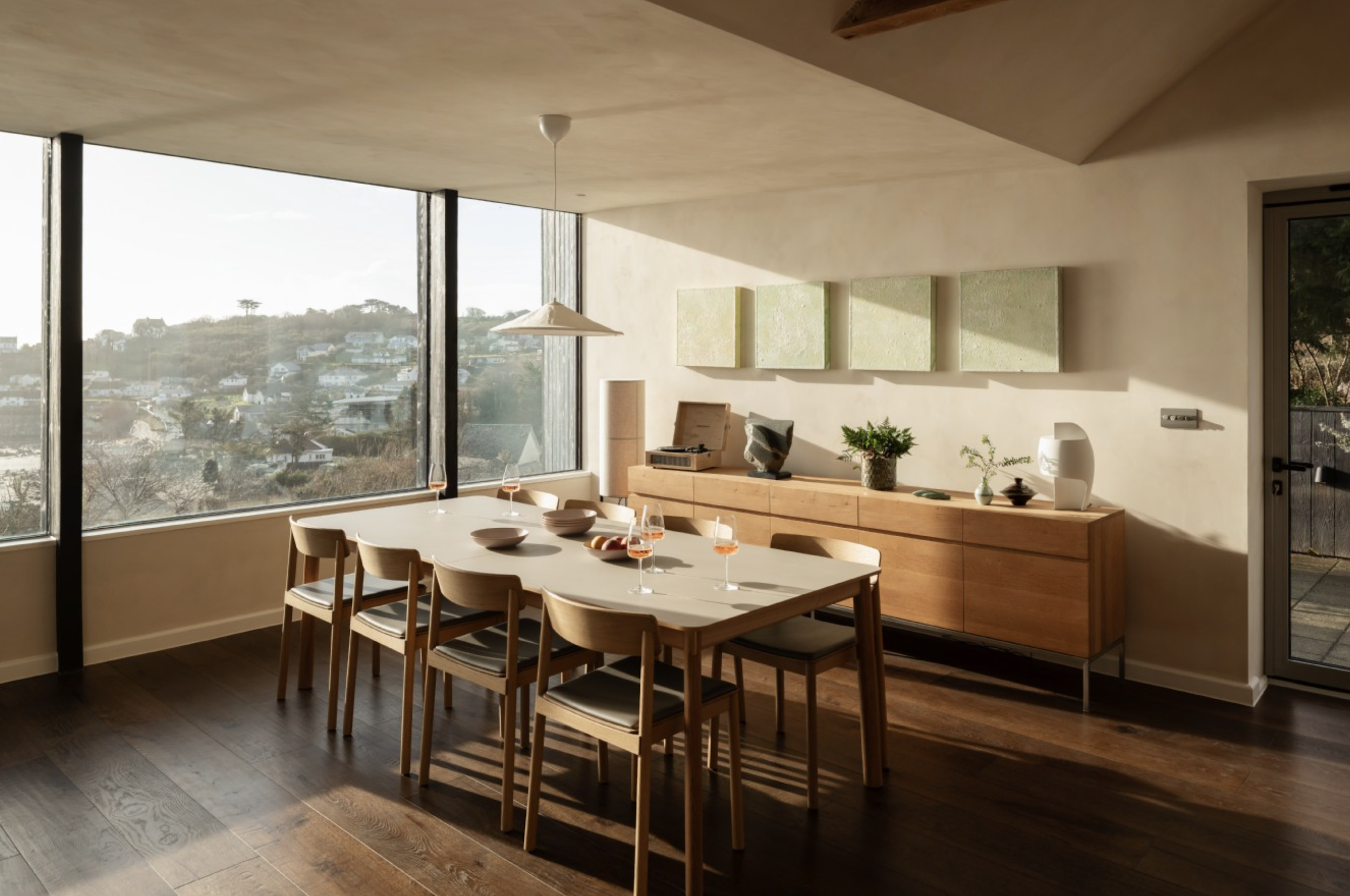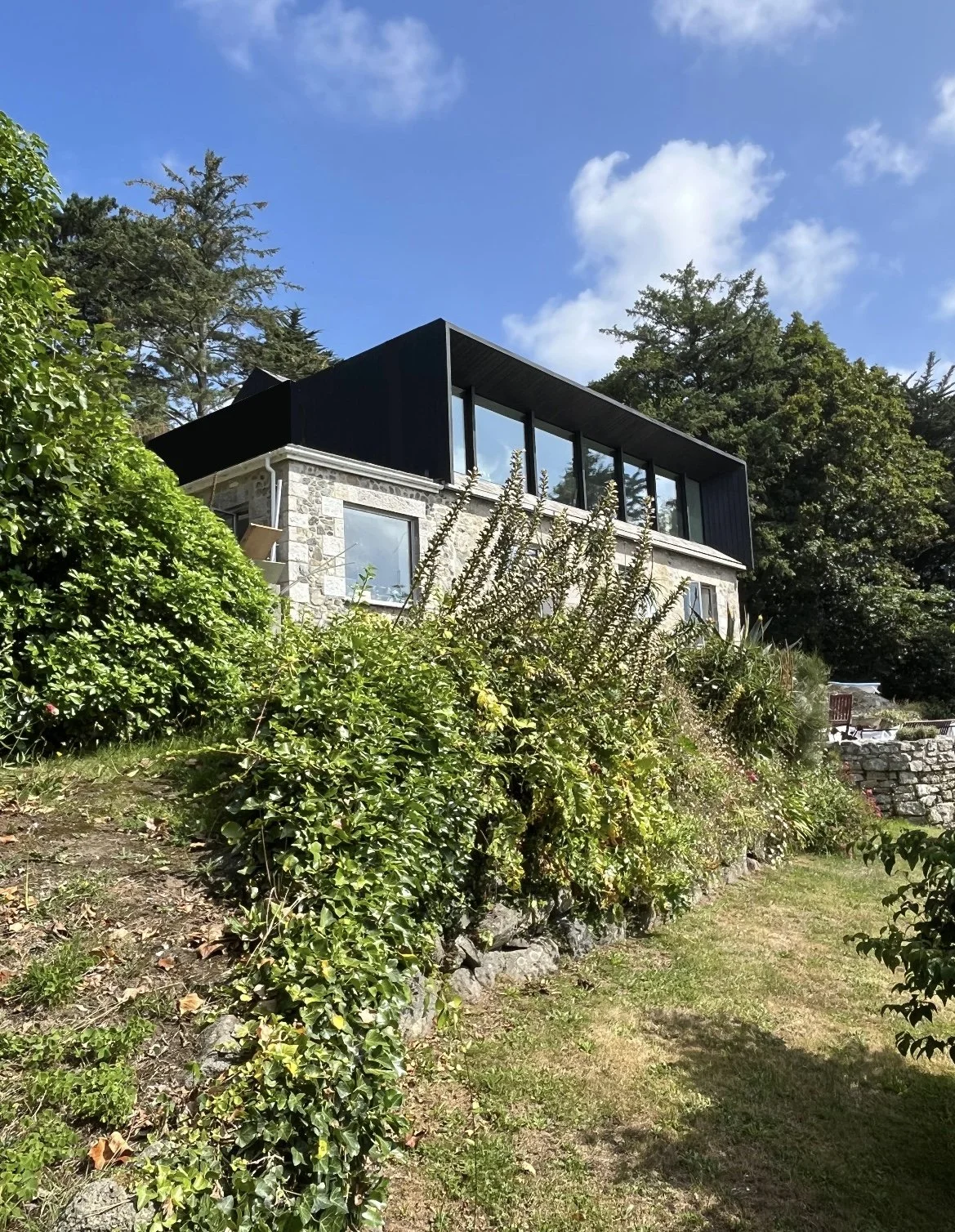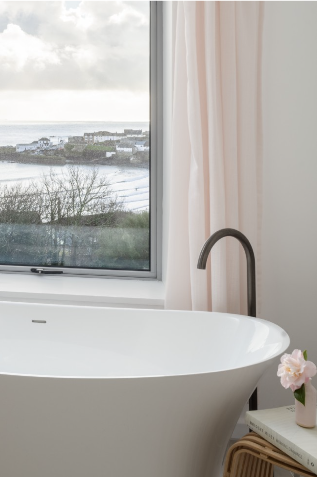 Framed in striking black cladding, the contemporary chamfered profile not only defines the architecture but also provides shelter from glare, keeping the focus on those spectacular coastal views .